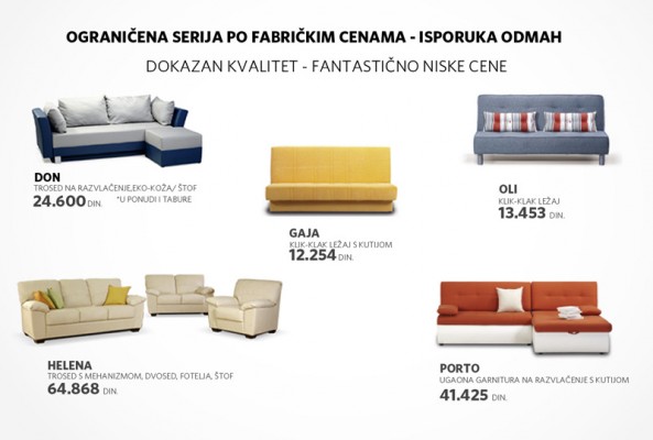 Forma Ideale Ugaone Garniture Akcija - Random Images ... from www.akcijeikatalozi.rs Ugaone garniture tdf garniture trosed dvosed fotelja. Naša kolekcija daleko poznatih garnitura napravljenih od visoko kvalitetnih materijala, svojim savršenim komforom i upotrebom. Ono što posebno razlikuje kožne garniture je što su izrađene od materijala koji se odlikuje velikom otpornošću na vanjske utjecaje. Veliki broj modela iz darijaninog asortimana , kao i model koji je nastao kao plod vaše mašte i kreativnosti bi mogao da se tapacira kožom. Poruči svoju kožnu garnituru ili samo sofu onlajn već danas. Koža je jedan od najtrajnijih materijala, ima moderan učinak, ali je istovremeno sinonim za bezvremenost i prestiž. Nameštaj od kože se smatrao luksuzom i materijalom za sva vremena. Prodaja kožnih garnitura u srbiji, firme koje prodaju kozne garniture sve na jednom mestu mozete pronaci na nasem portalu.